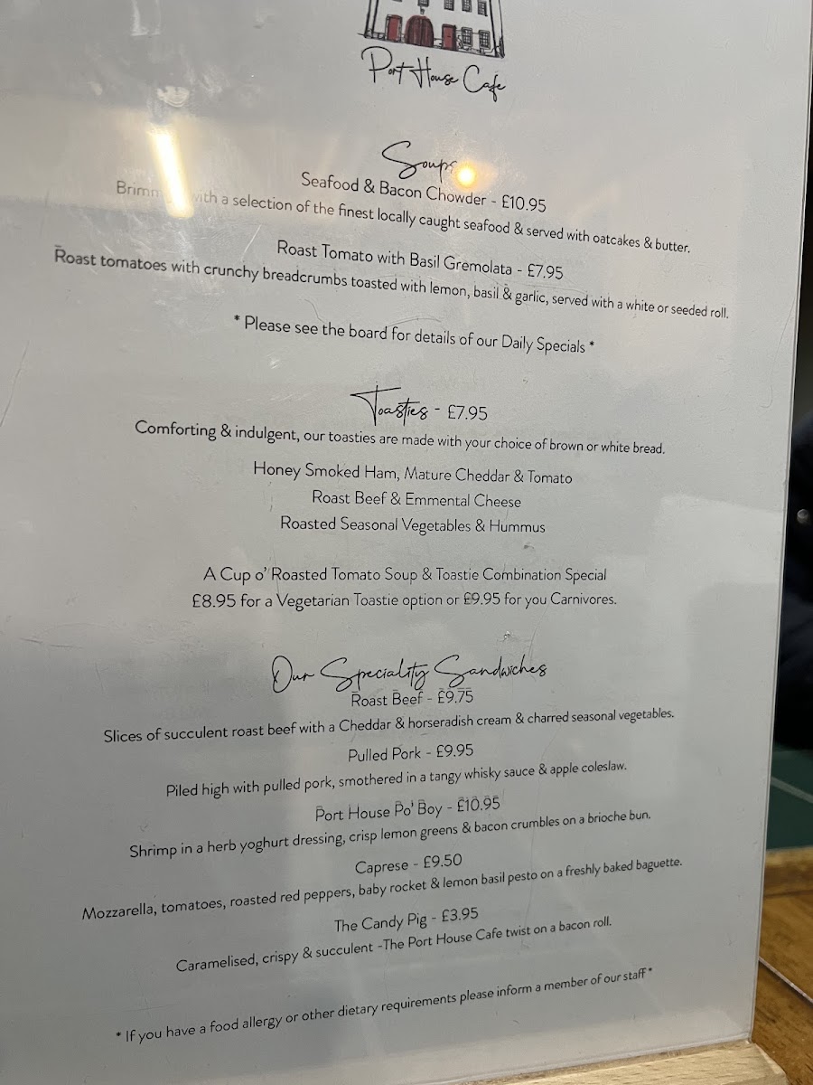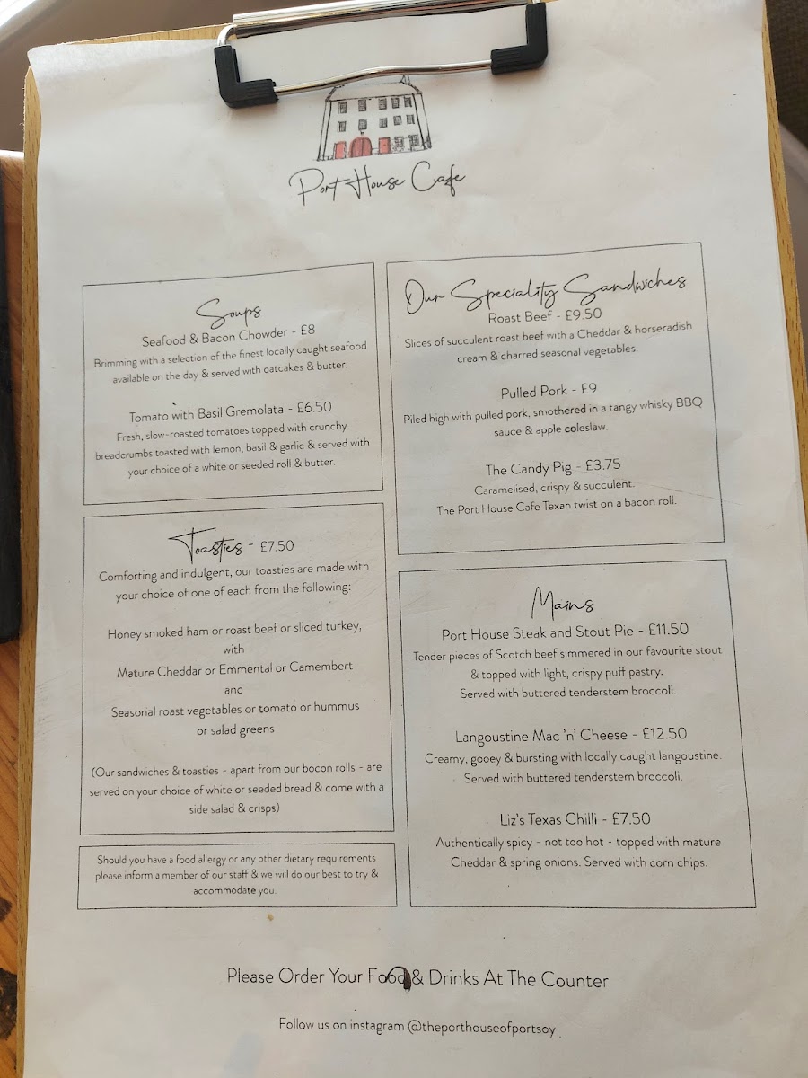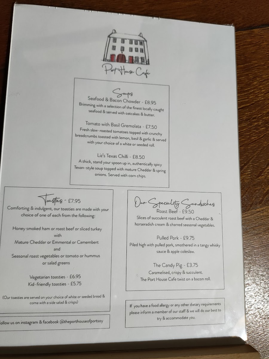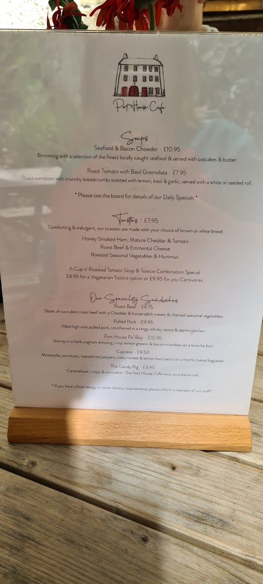 Welcome to The Port House of Portsoy, a charming eatery nestled at 10B Shorehead, Portsoy, where extraordinary culinary experiences await. This delightful cafe is known for its welcoming atmosphere, ideal for food lovers and their furry companions. The menu features a medley of offerings ranging from homemade Seafood Chowder to scrumptious sandwiches, all crafted with care to satisfy varied dietary needs including gluten-free and vegetarian options.